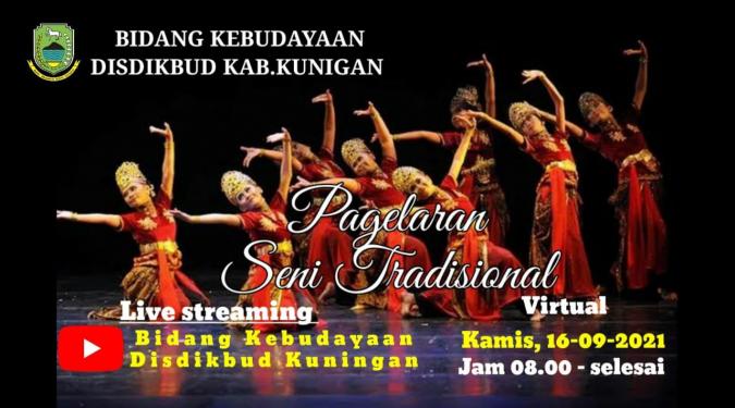 Hari ini Kamis 16/09/2021 diadakan Pagelaran Seni Tradisional. Masyarakat bisa langsung menyaksikan acara ini secara virtual (Live streaming youtube Bidang Kebudayaan Disdikbud Kuningan) https://www.youtube.com/watch?v=1OEHBD18OSs