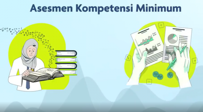 Asesmen Kompetensi Minimum (AKM) merupakan penilaian kompetensi mendasar yang diperlukan oleh semua murid untuk mampu mengembangkan kapasitas diri dan berpartisipasi positif pada masyarakat. Terdapat dua kompetensi mendasar yang diukur AKM: literasi membaca dan literasi matematika (numerasi). Baik pada literasi membaca dan numerasi, kompetensi yang dinilai mencakup keterampilan berpikir logis-sistematis, keterampilan bernalar menggunakan konsep serta pengetahuan yang telah dipelajari, serta keterampilan memilah serta mengolah informasi. AKM menyajikan masalah-masalah dengan beragam konteks yang diharapkan mampu diselesaikan oleh murid menggunakan kompetensi literasi membaca dan numerasi yang dimilikinya. AKM dimaksudkan untuk mengukur kompetensi secara mendalam, tidak sekedar penguasaan konten. Literasi membaca didefinisikan sebagai kemampuan untuk memahami, menggunakan, mengevaluasi, merefleksikan berbagai jenis teks tertulis untuk mengembangkan kapasitas individu sebagai warga Indonesia dan warga dunia dan untuk dapat berkontribusi secara produktif kepada masyarakat. Numerasi adalah kemampuan berpikir menggunakan konsep, prosedur, fakta, dan alat matematika untuk menyelesaikan masalah sehari-hari pada berbagai jenis konteks yang relevan untuk individu sebagai warga negara Indonesia dan dunia.